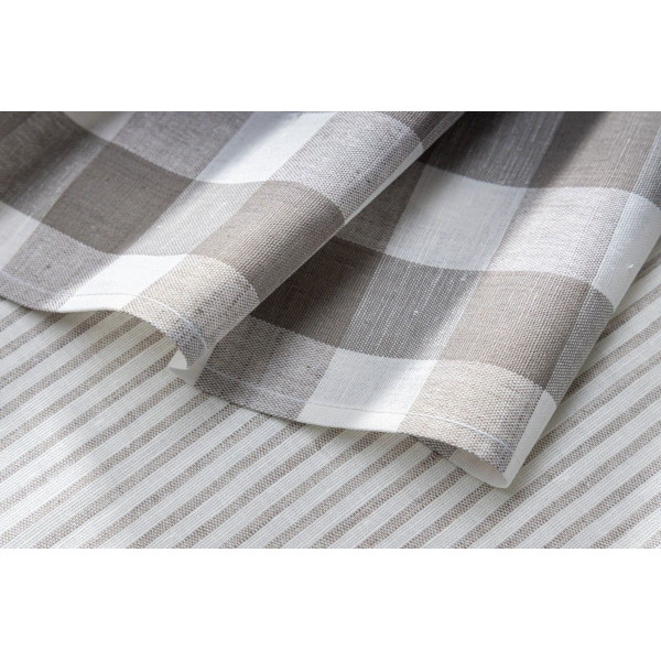 KRACHT – Geschirrtuch / Tea Towel 2er Set – Halbleinen, Streifen – Karo, grau