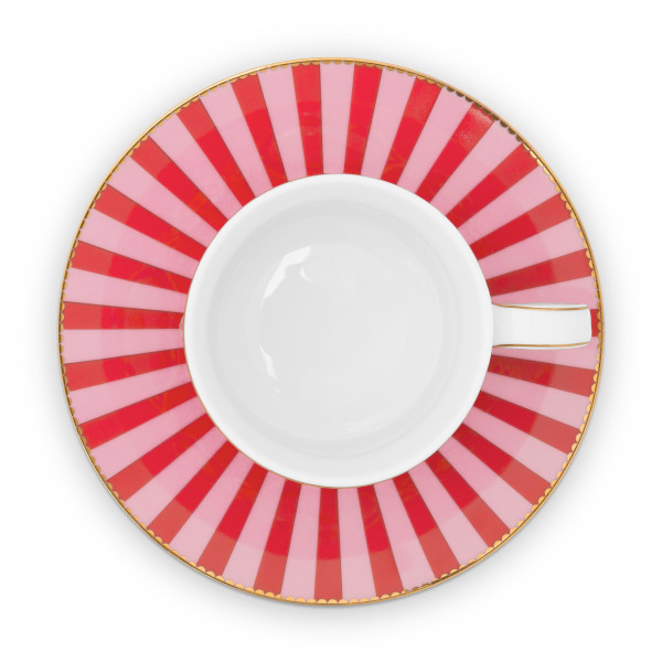 Pip Studio – Tasse & Untertasse – Love Birds Medaillon, red / pink , 200ml